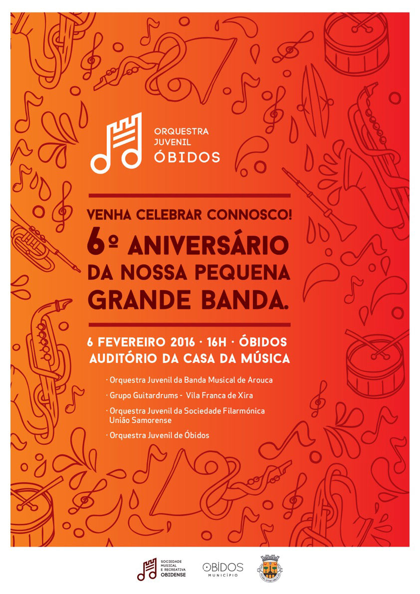 No próximo dia 6 de Fevereiro a Banda Juvenil da Banda Musical de Arouca desloca-se ao Auditório da Casa da Música de Óbidos, para participar no 6º Aniversário da Banda Juvenil de Óbidos.